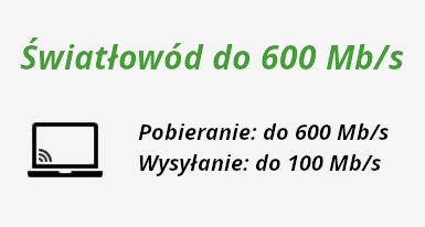 Pobieranie: do 600 Mb/s - Wysyłanie do 100 Mb/s