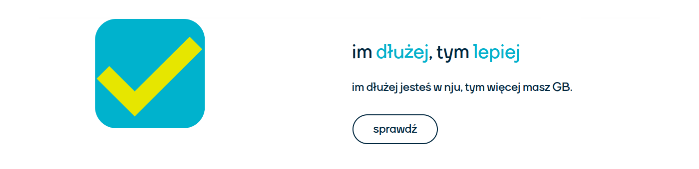 Zyskaj pełną swobodę komunikacji z NJU Mobile. W cenie 31 zł miesięcznie otrzymujesz aż 60 GB internetu na start, a za staż możesz zgromadzić nawet do 180 GB! Dodatkowo 9 GB do wykorzystania w roamingu UE bez dopłat. Rozmowy, SMS-y i MMS-y bez limitu – zarówno w Polsce, jak i w Unii Europejskiej. Korzystaj z nowoczesnych rozwiązań: dostęp do sieci 5G oraz możliwość aktywacji eSIM – wszystko wygodnie w aplikacji NJU. Dla nowych klientów przenoszących numer od innego operatora (z wyłączeniem Orange i NJU) przygotowano promocję – 3 miesiące za 0 zł! Brak długoterminowych umów – pełna elastyczność i przejrzystość warunków. Oferta idealna dla osób ceniących niezawodne połączenia, szybki internet i wolność wyboru. Przenieś numer, zyskaj więcej i płać mniej z NJU!